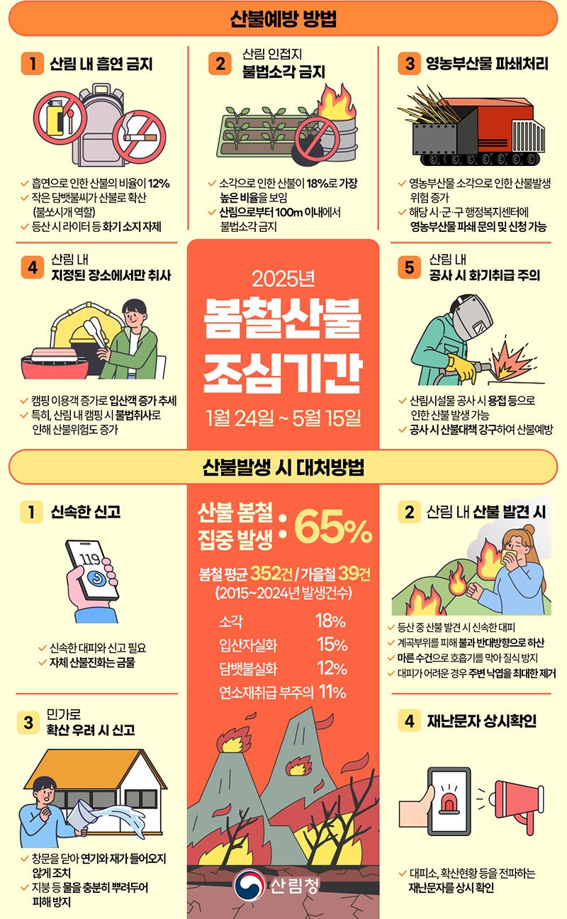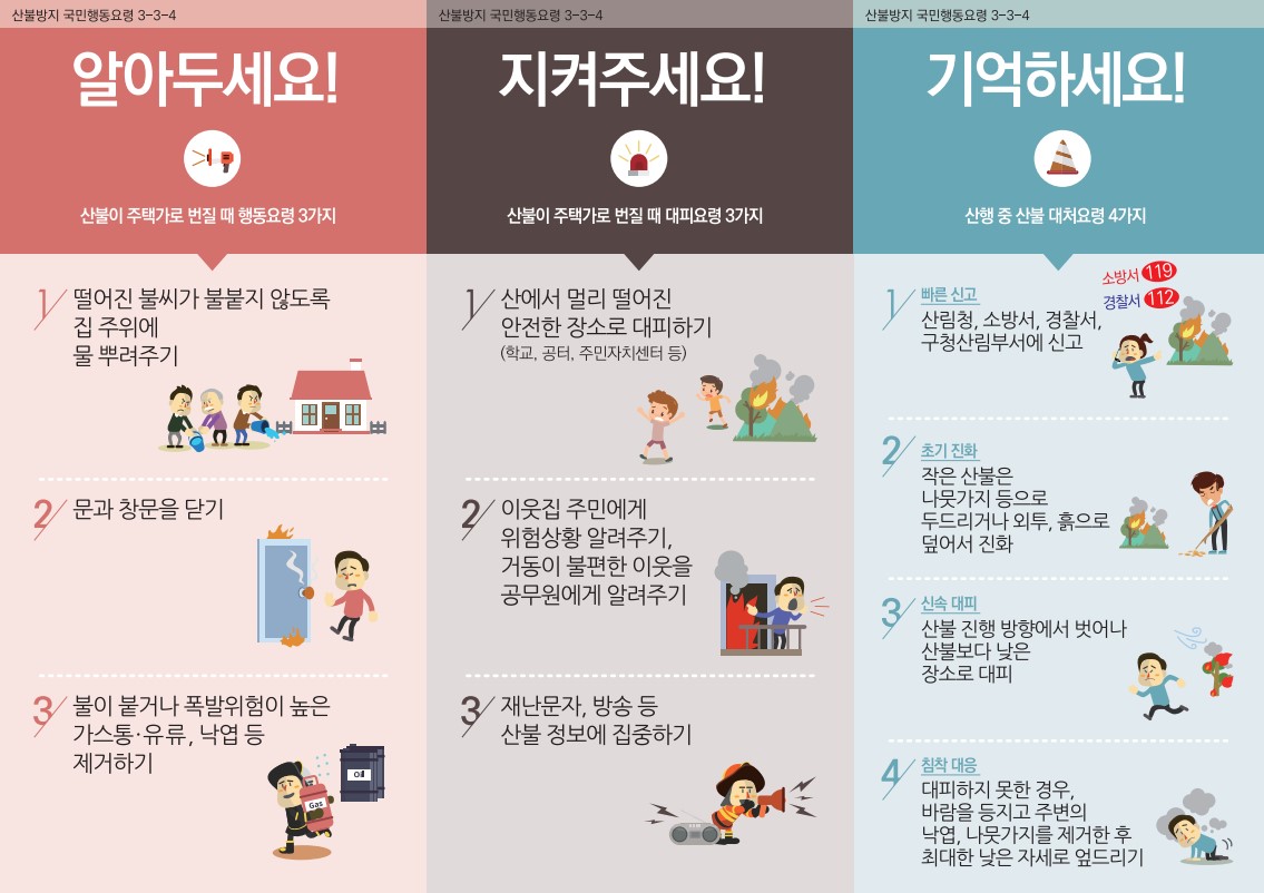 산불재난 국가위기경보 「심각」단계로 격상됨에 따라 산불예방 행동요령을 아래와 같이 안내드립니다.