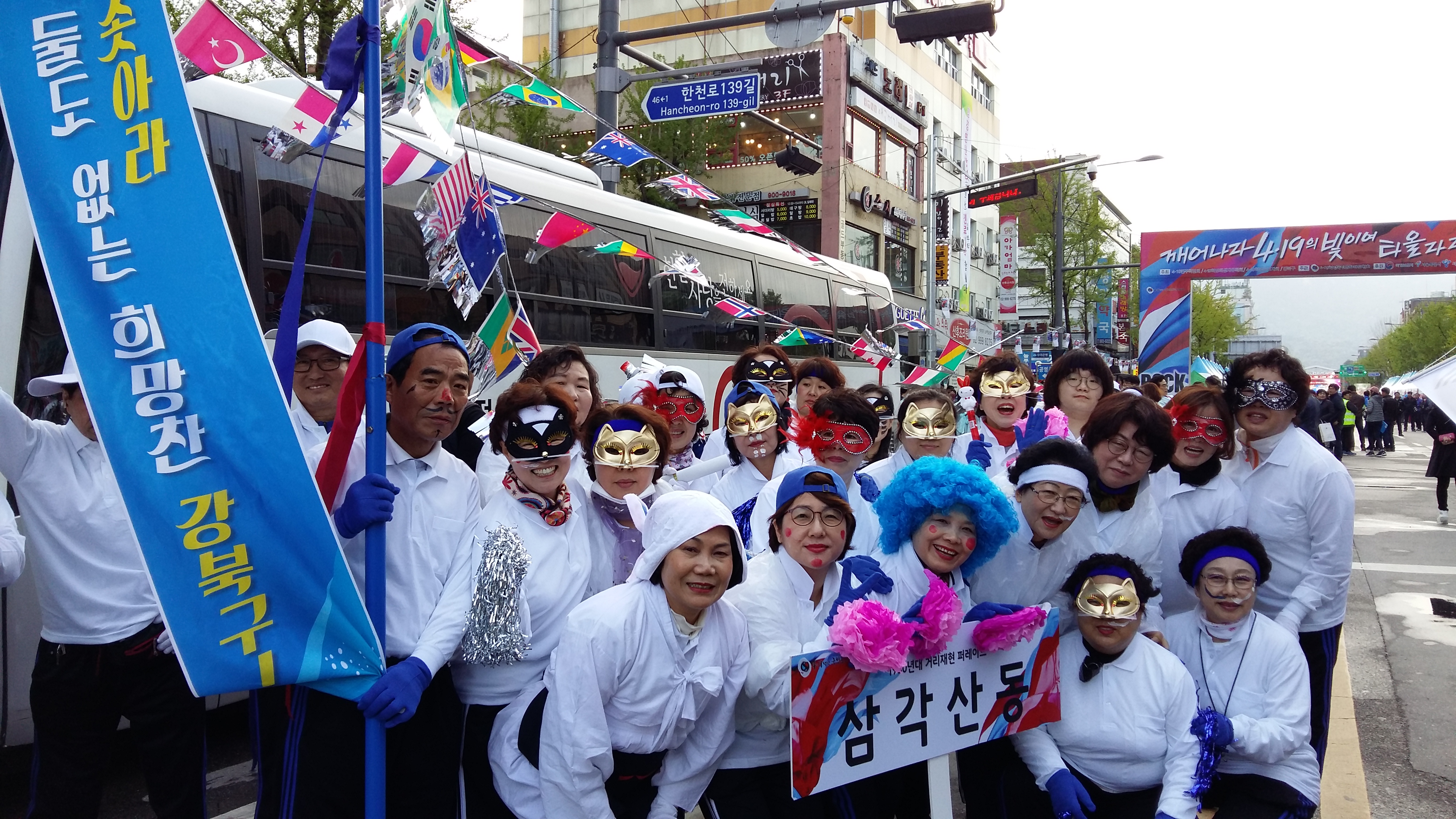 4.19혁명 국민문화제 전야제 퍼레이드에 삼각산동도 참여를 했습니다.