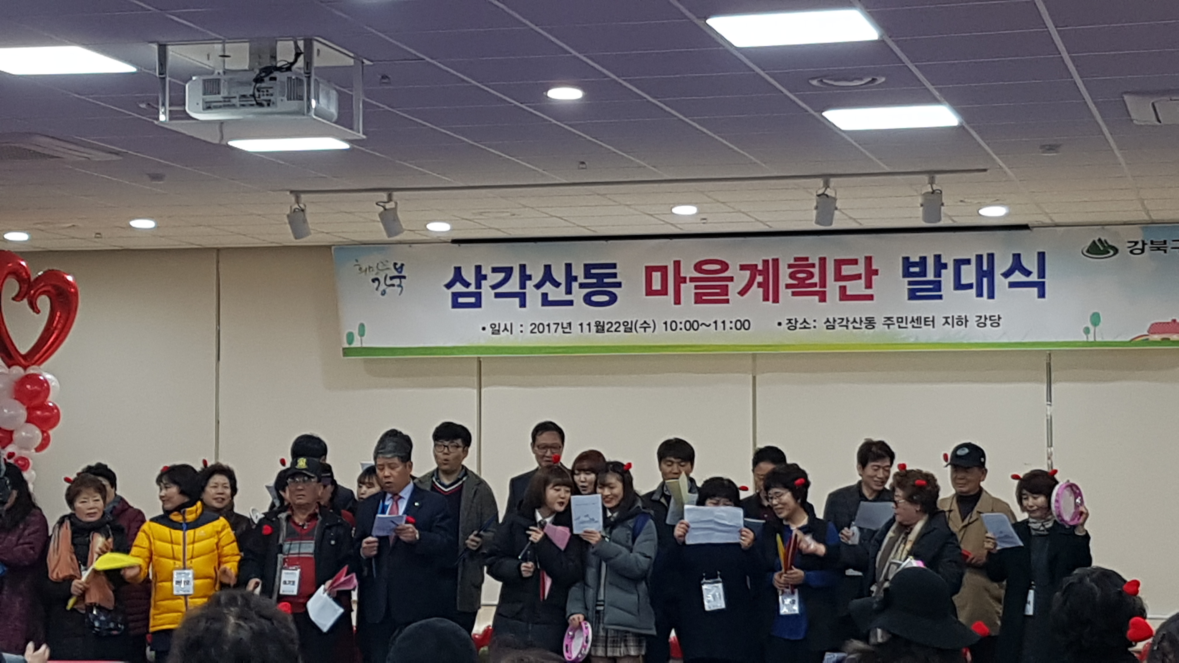 삼각산동 강당에서는 삼각산동마을계획단 발대식이 있었습니다.