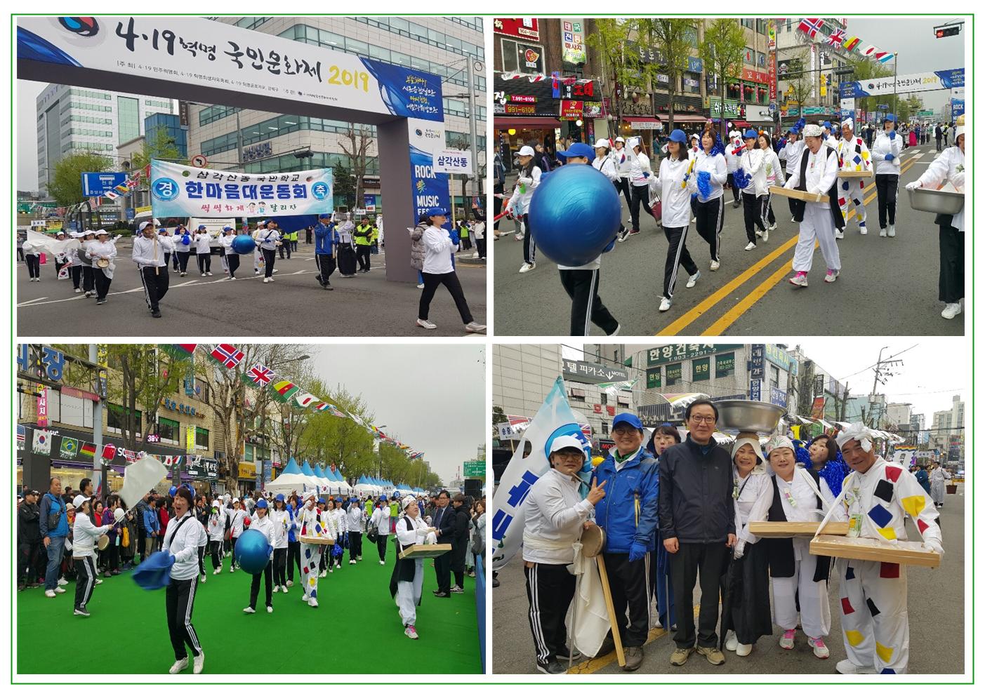 「4.19혁명 국민문화제」의 일환으로 진행된 1960년대 거리재현 퍼레이드에 우리 삼각산동에서는 1960년대 운동회를 주제로 참가하였습니다. 공굴리기, 달리기계주, 응원모습을 선보였으며, 엿장수, 고구마 장수도 참가하여 운동회 분위기를 더욱 끌어올렸답니다.