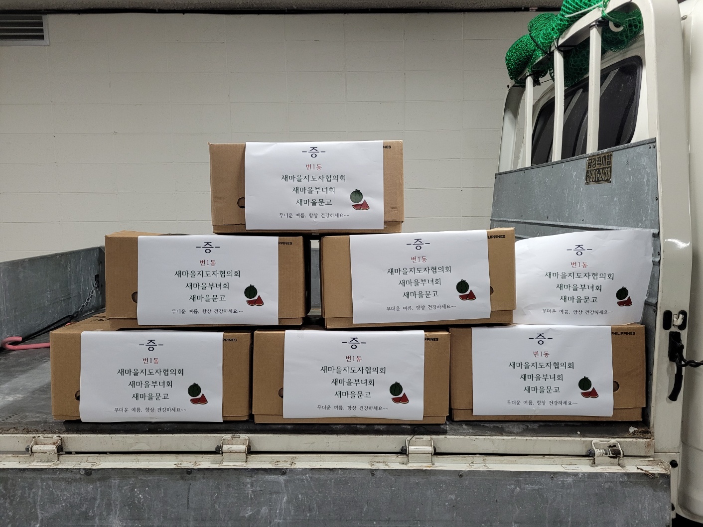 내용: 무더운 여름, 6개 경로당에 계신 어르신들께 수박 두통씩 전달 완료