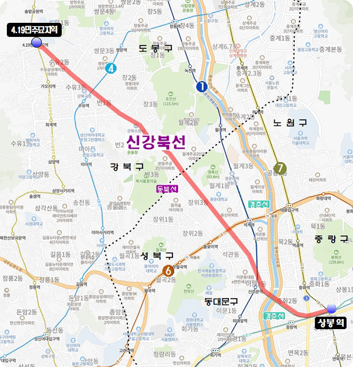 4.19민주묘역(우이신설선)~상봉역(7호선)