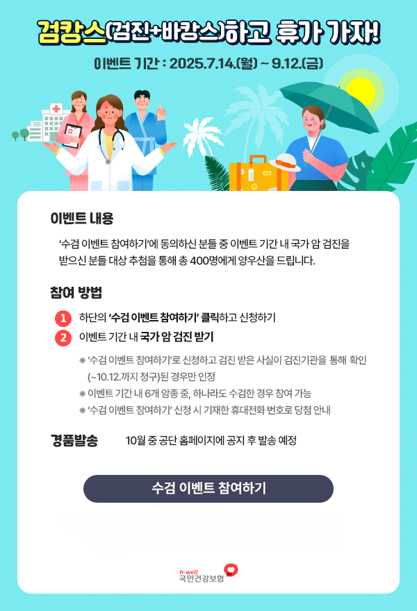 검캉스(검진?바캉스) 하고 휴가가자 (휴가철 암검진 수검 이벤트)