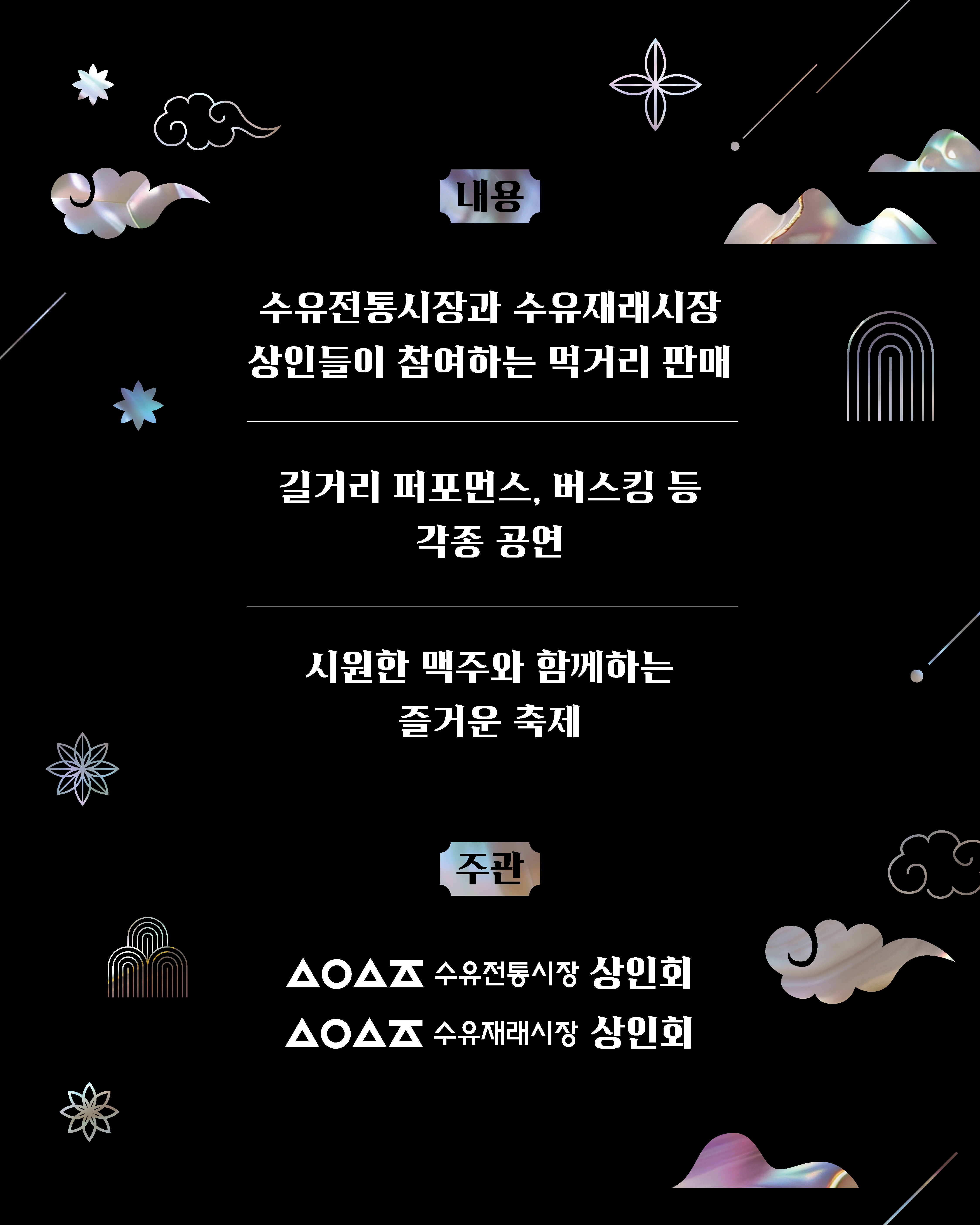 장 소: 수유전통시장, 수유재래시장(도봉로71, 도봉로67길 일대)