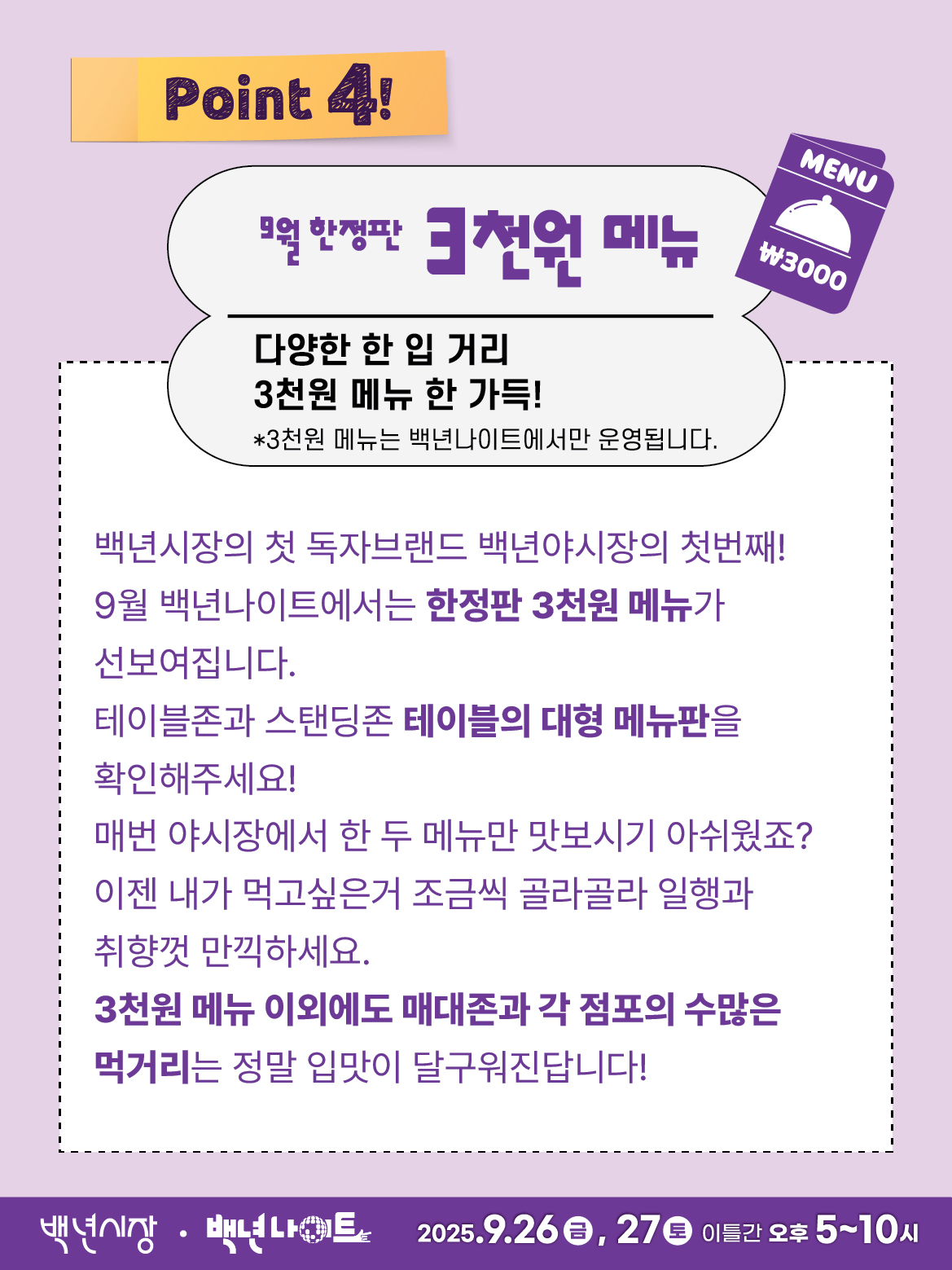 이번 회차에는 9월 한정 3천 원 맛보기 메뉴도 준비했으니, 많이 많이 놀러 오세요!