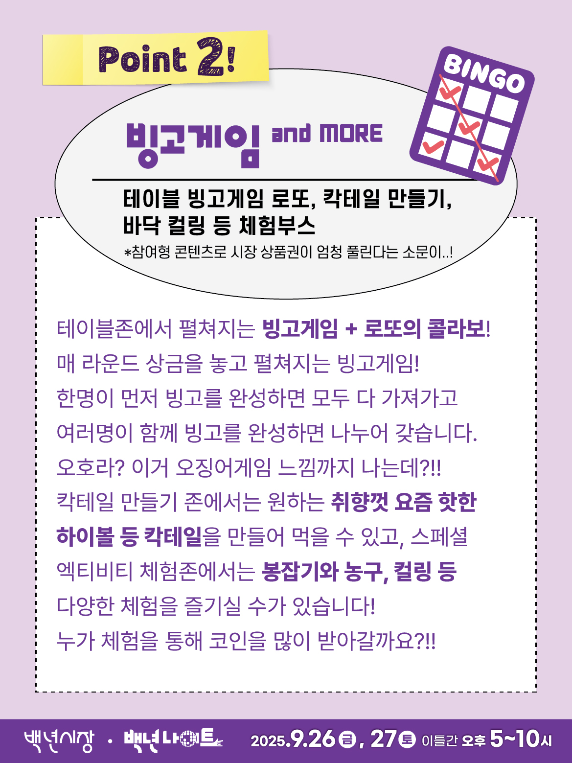 문 의: 백년시장 문화관광형시장 육성사업단(02-903-9110, 카카오톡 채널 "백년시장" 친구추가)