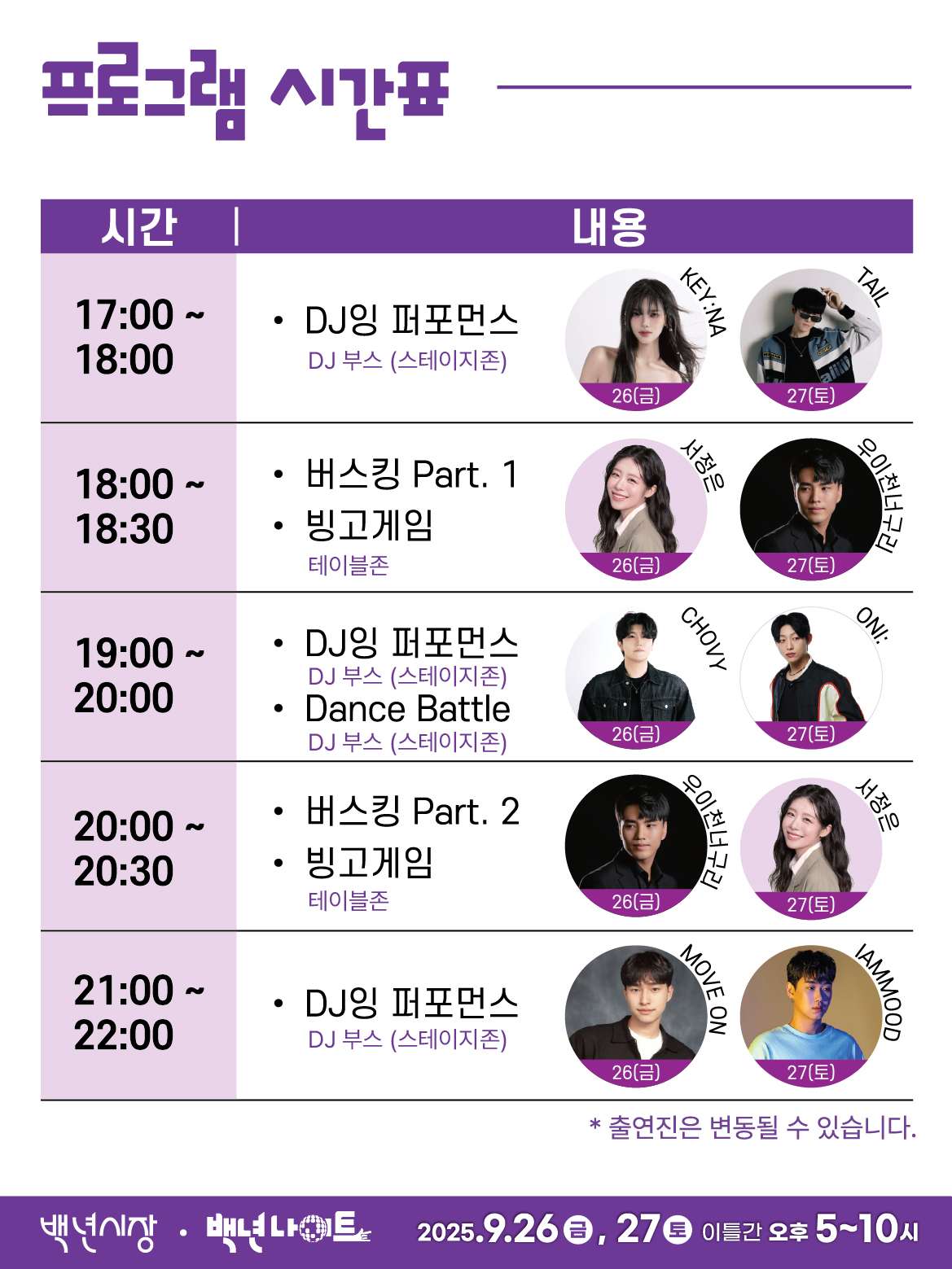 기 간: 2025. 9. 26.()~9. 27.() 17:00~22:00
