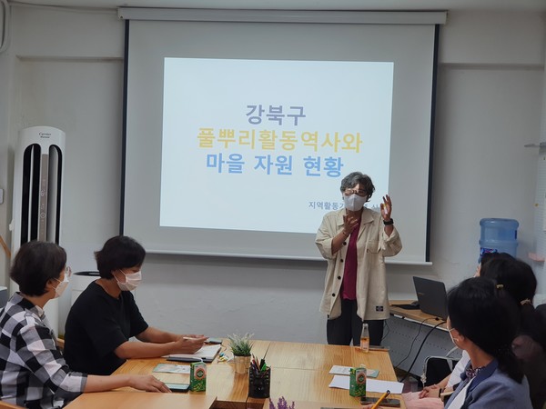 오늘의 교육내용을 소개하는 김혜신 강사 ⓒ강북구마을자치센터
