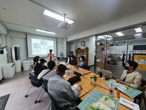 강북구는 이런 주민들의 활동이 활발한 자치구중 하나라고 손꼽을 수 있다고 하셨는데요, 다양한 사진, 영상자료를 통해 강북구에 현재 이렇게 많고 다양한 분야의 자원들이 주민들의 협동을 바탕으로 운영되고 있다는 것을 소개해주셨어요. 참여자분들도 이렇게 많은 강북구의 자원이 있었는지 몰랐다고, 이번기회에 관심있게 볼수 있는 계기가 되었다고 말했습니다.