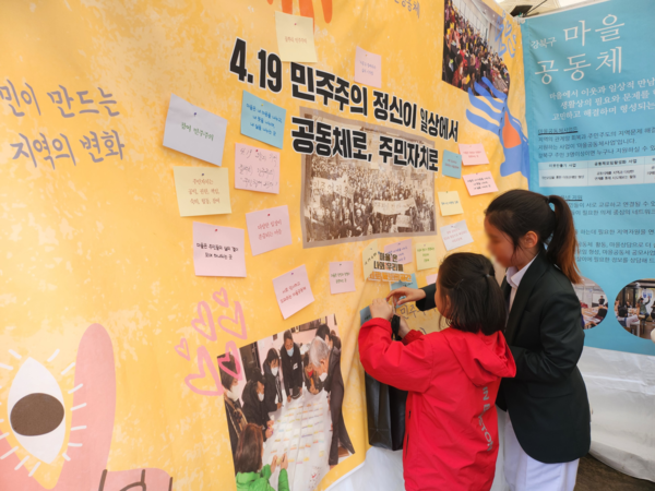 강북구마을자치센터는 주민참여 정책인 마을공동체, 주민자치회를 알리기위해 4.19혁명 기념문화제에 시민참여부스로 참여했습니다.  일상에서 주민참여 정책으로 일궈지고 있는 마을공동체주민자치회를 소개하고 참여를 안내했습니다.