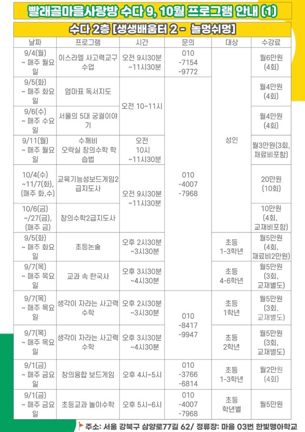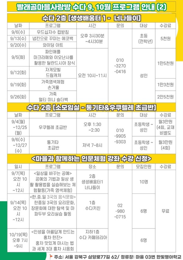 10월 프로그램 안내 홍보지 ⓒ수유1동마을관리사회적협동조합