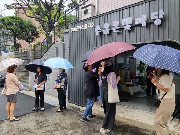 비가 내리긴 했지만, 20여명의 주민들이 일찍부터 도착해 차 한 잔을 마시며 공간여행을 준비하고 있었다. 박경희 수유1동 마을관리 사회적 협동조합 이사장이 도시재생사업을 통해 주민들이 수년간의 토론과 협동을 바탕으로 만든 마을공간 세 곳에 대해 설명해 주었다.