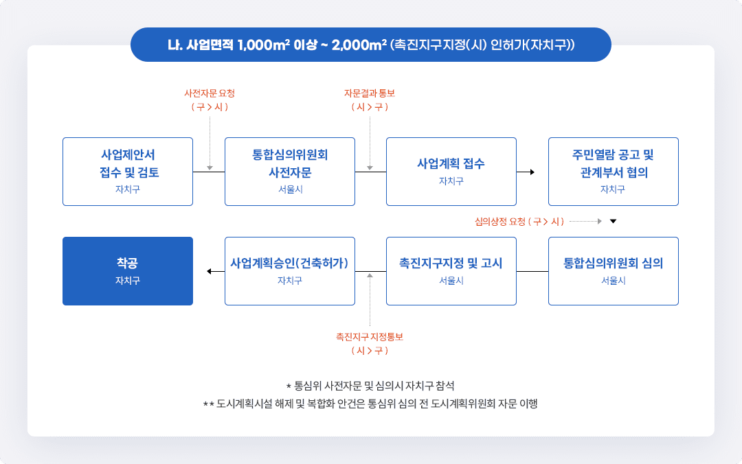 나. 사업면적 1,000 ㎡이상 ~ 2,000 ㎡ 이하(촉진지구지정(시) 인허가(자치구))
