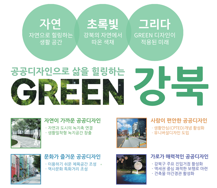 강북구는 도시 경쟁력 향상을 위해 <공공디자인 진흥계획>을 수립했습니다.