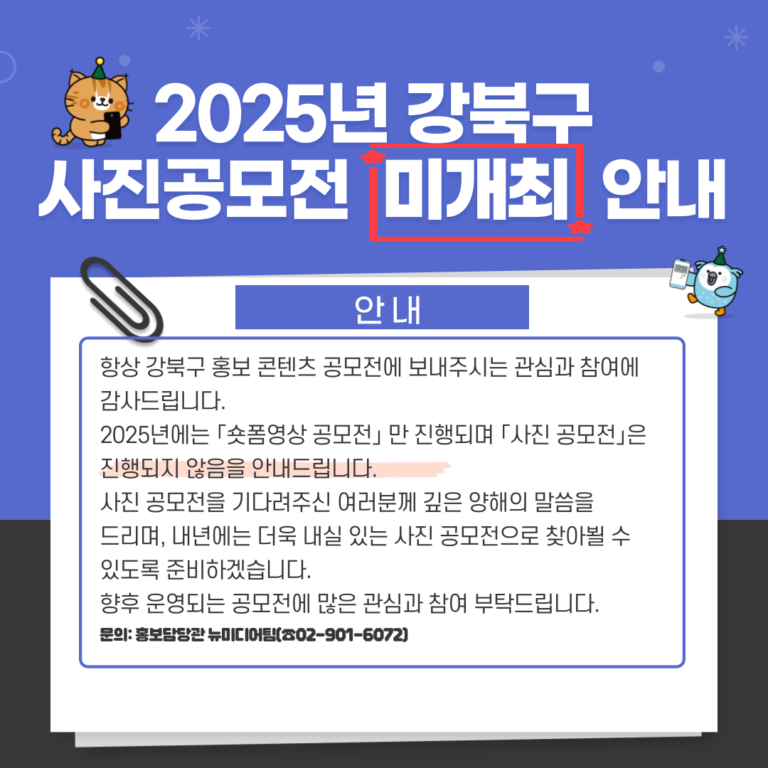 2025년에는 「숏폼영상 공모전」만 진행되며 「사진 공모전」은 진행되지 않음을 안내드립니다.
