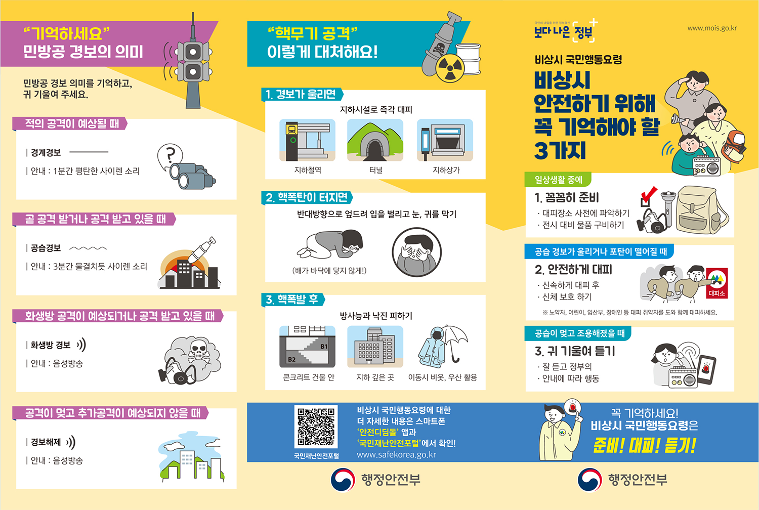 민방공 경보 의미를 기억하고, 귀 기울여 주세요.