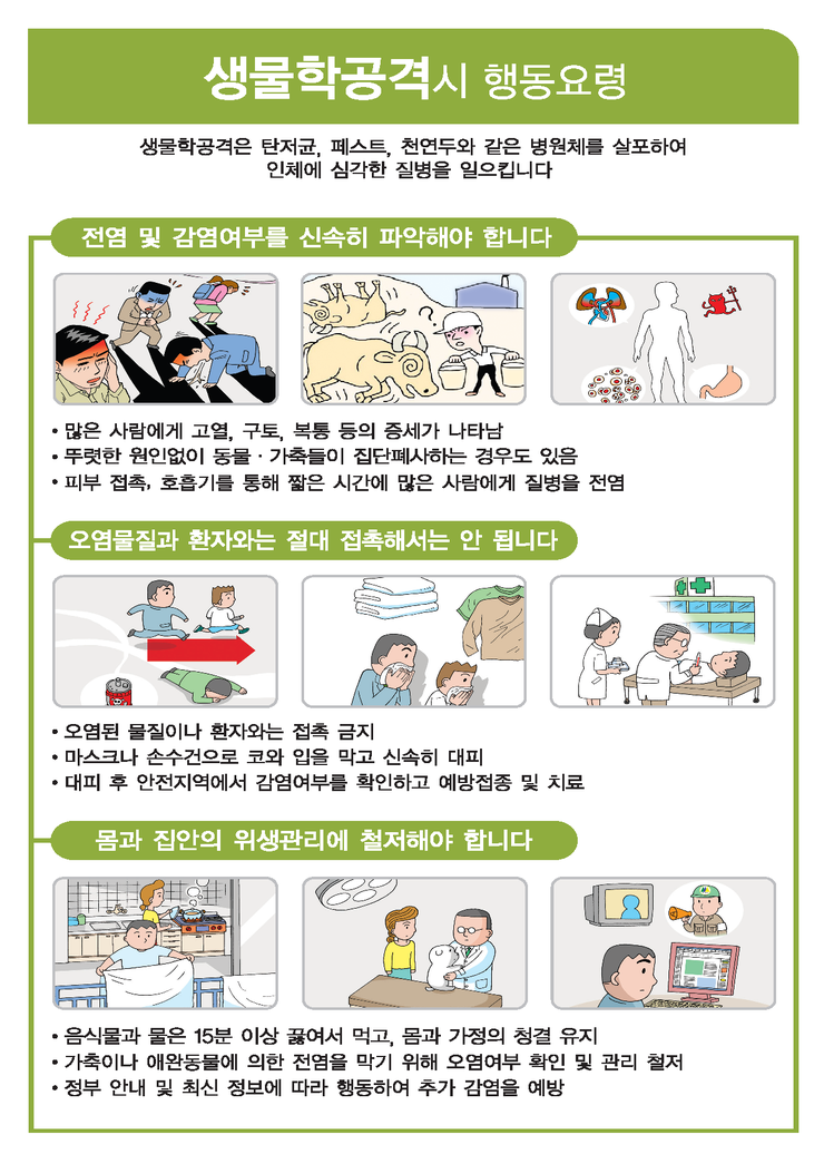 생물학공격은 탄저균, 페스트, 천연두와 같은 병원체를 살포하여 인체에 심각한 질병을 일으킵니다
