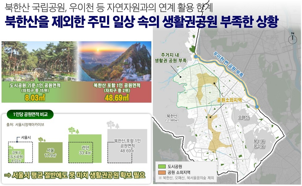 강북구 전체 면적의 52.4%가 공원, 하천 등 보전지역
