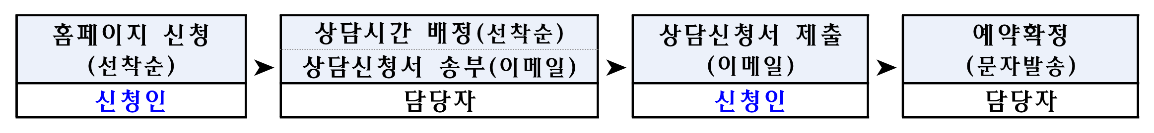 ※ 접수 선정자에 한해 상담신청서를 보내드리며, 상담신청서 제출 후 예약확정 시 문자를 보내드립니다.