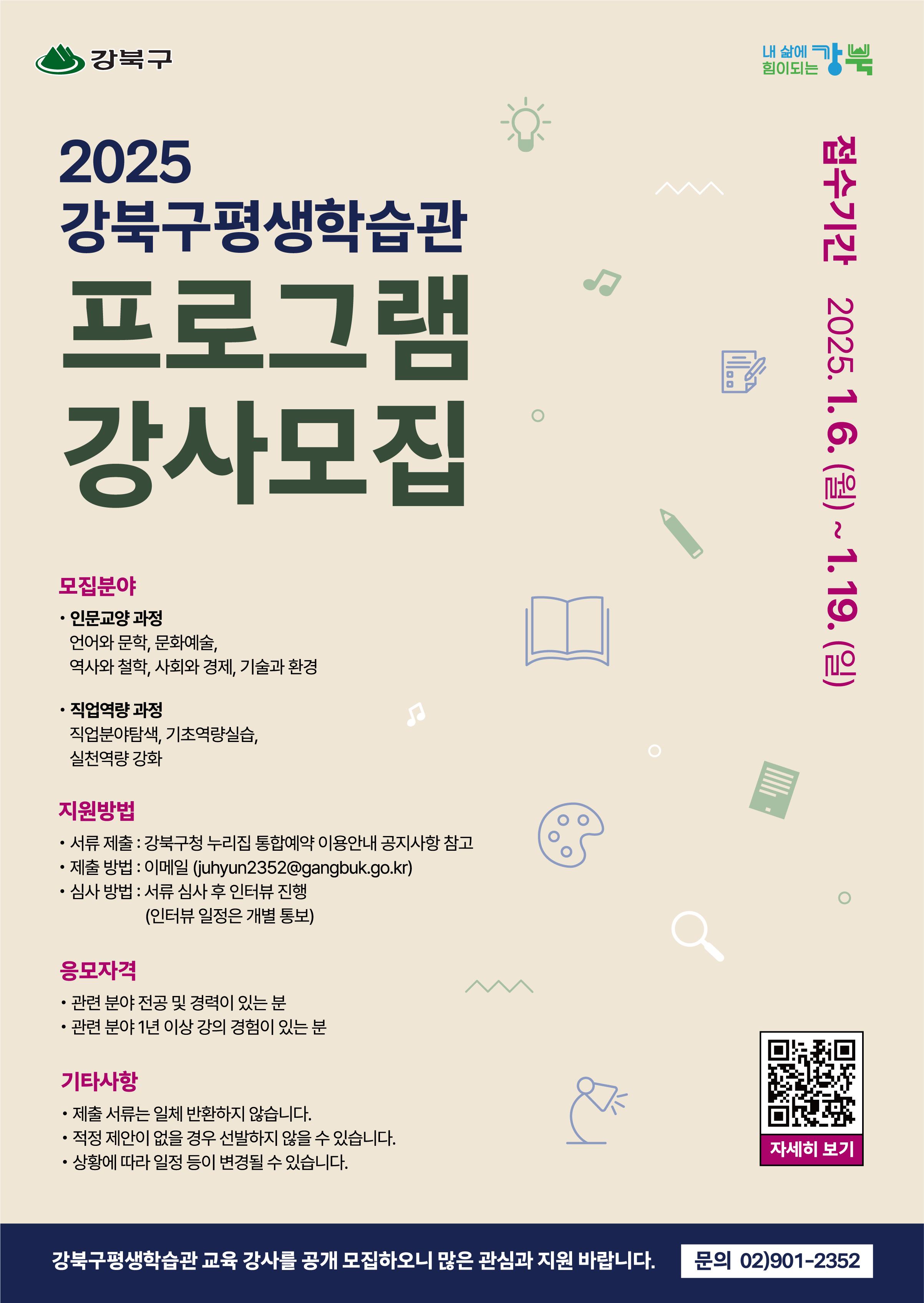 2025년 강북구 평생학습관 프로그램 강사 모집