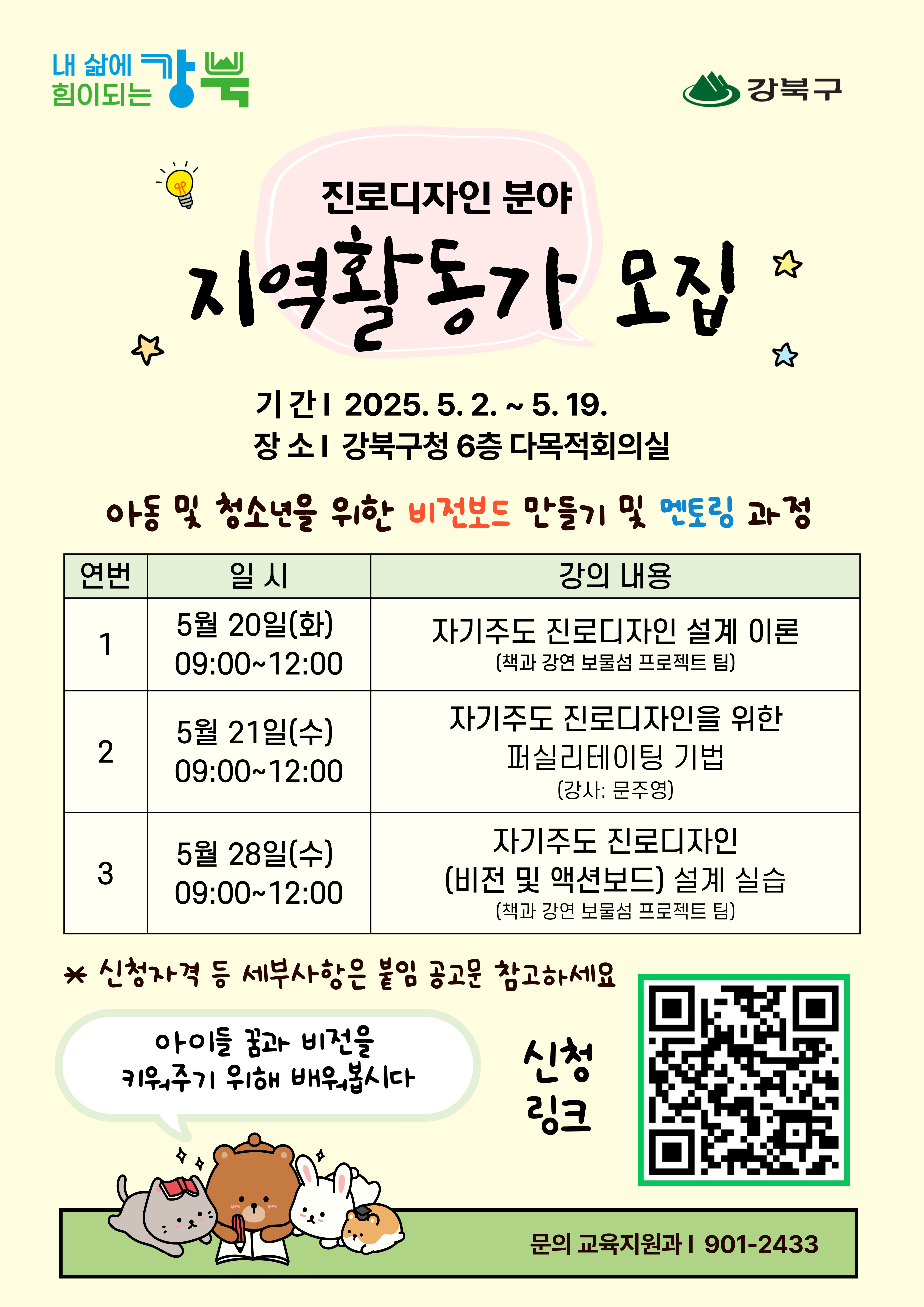 라. 지원자격: 강북구 거주 또는 교육 관련 기관·단체 등에 소속되어 활동하고 있는 구민