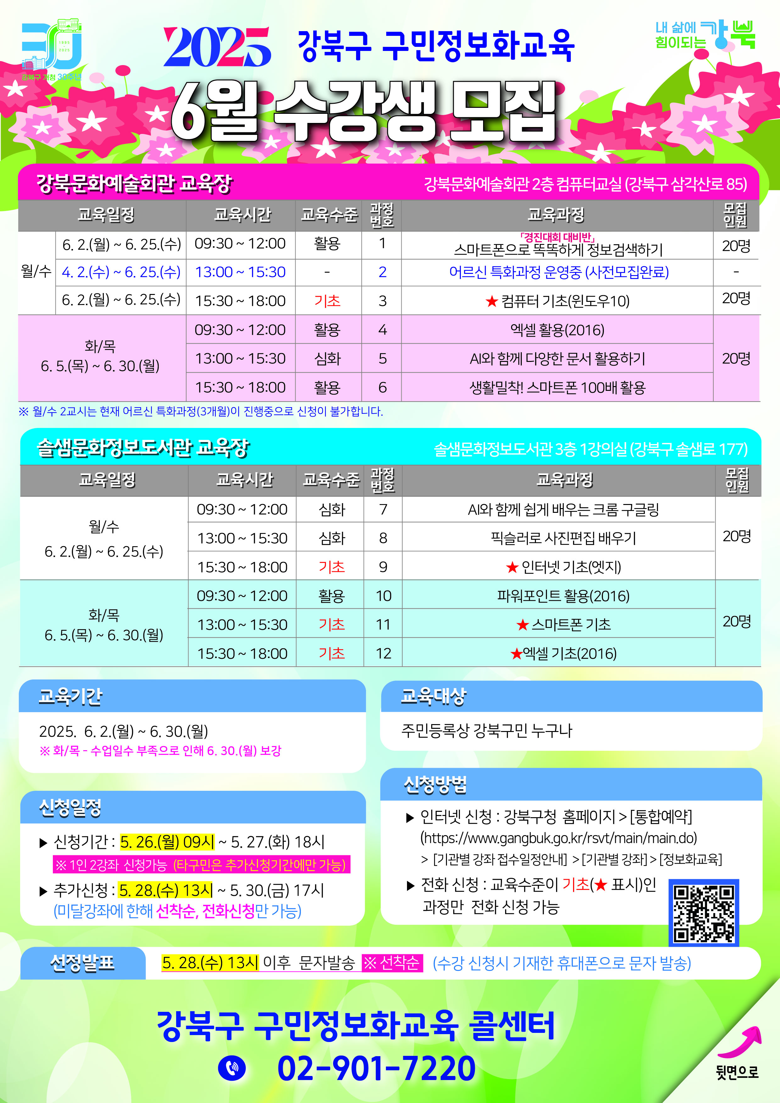 강북구 구민정보화교육 콜센터 ☎ 02-901-7220