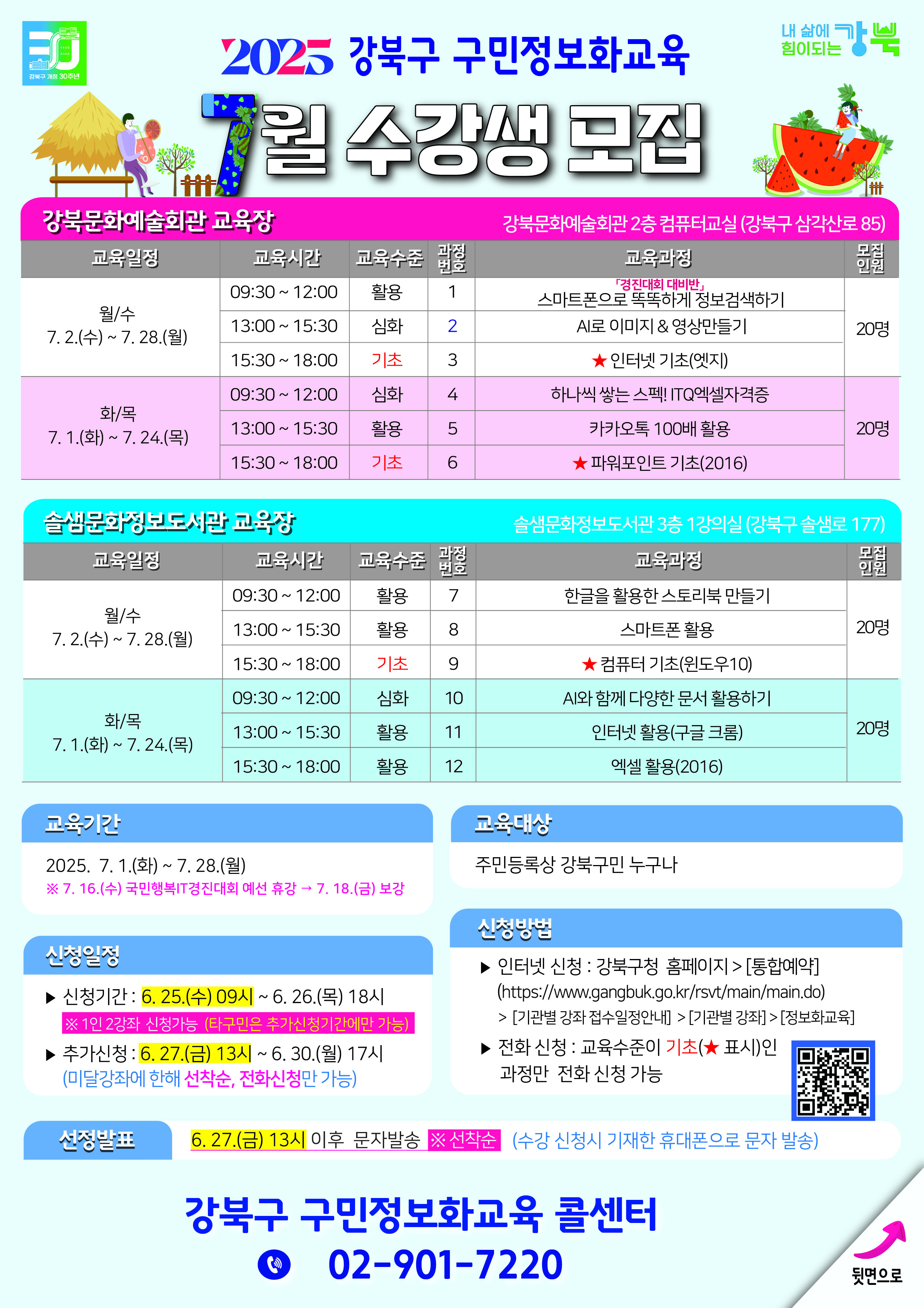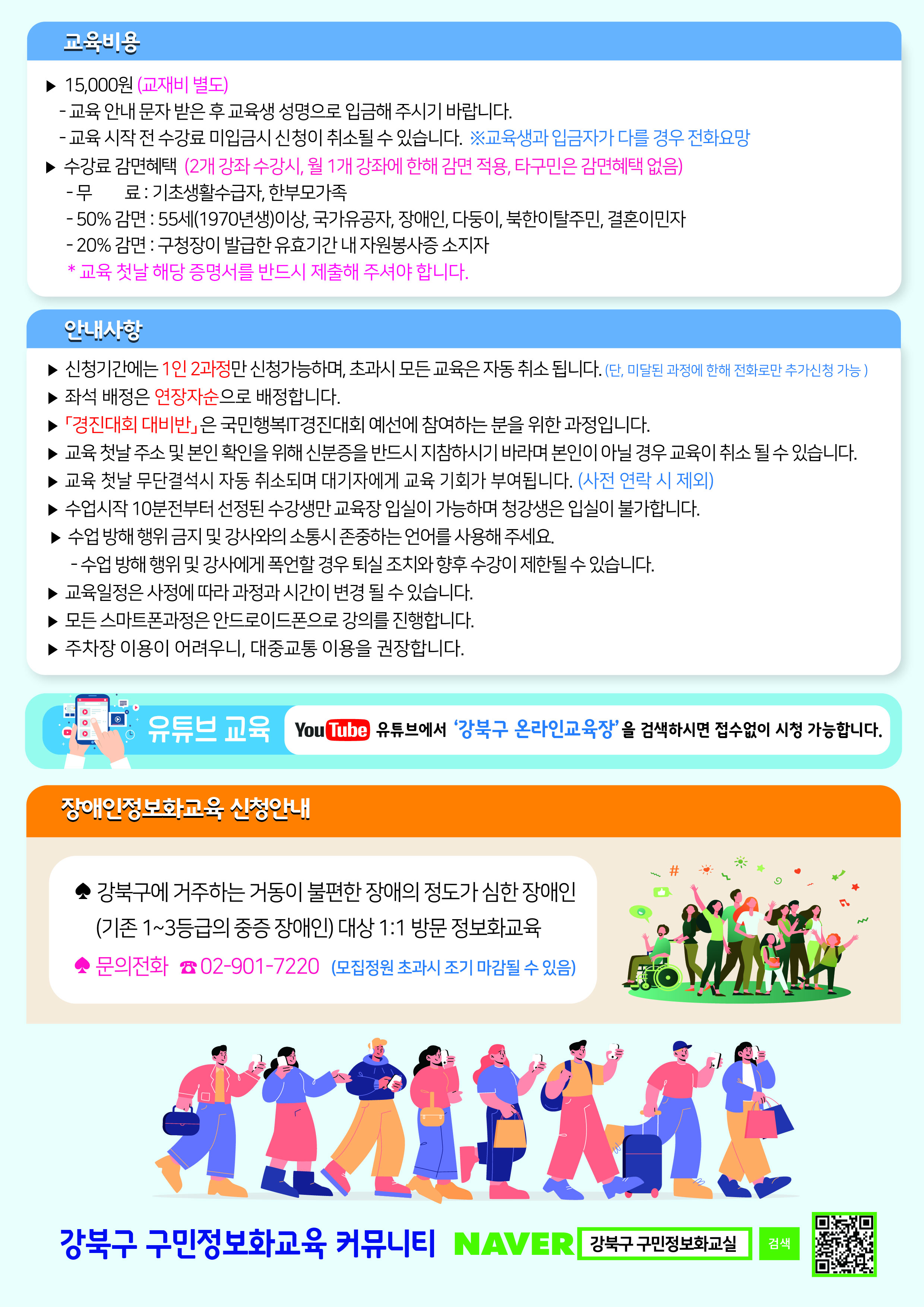 강북구 구민정보화교육 콜센터 ☎ 02-901-7220