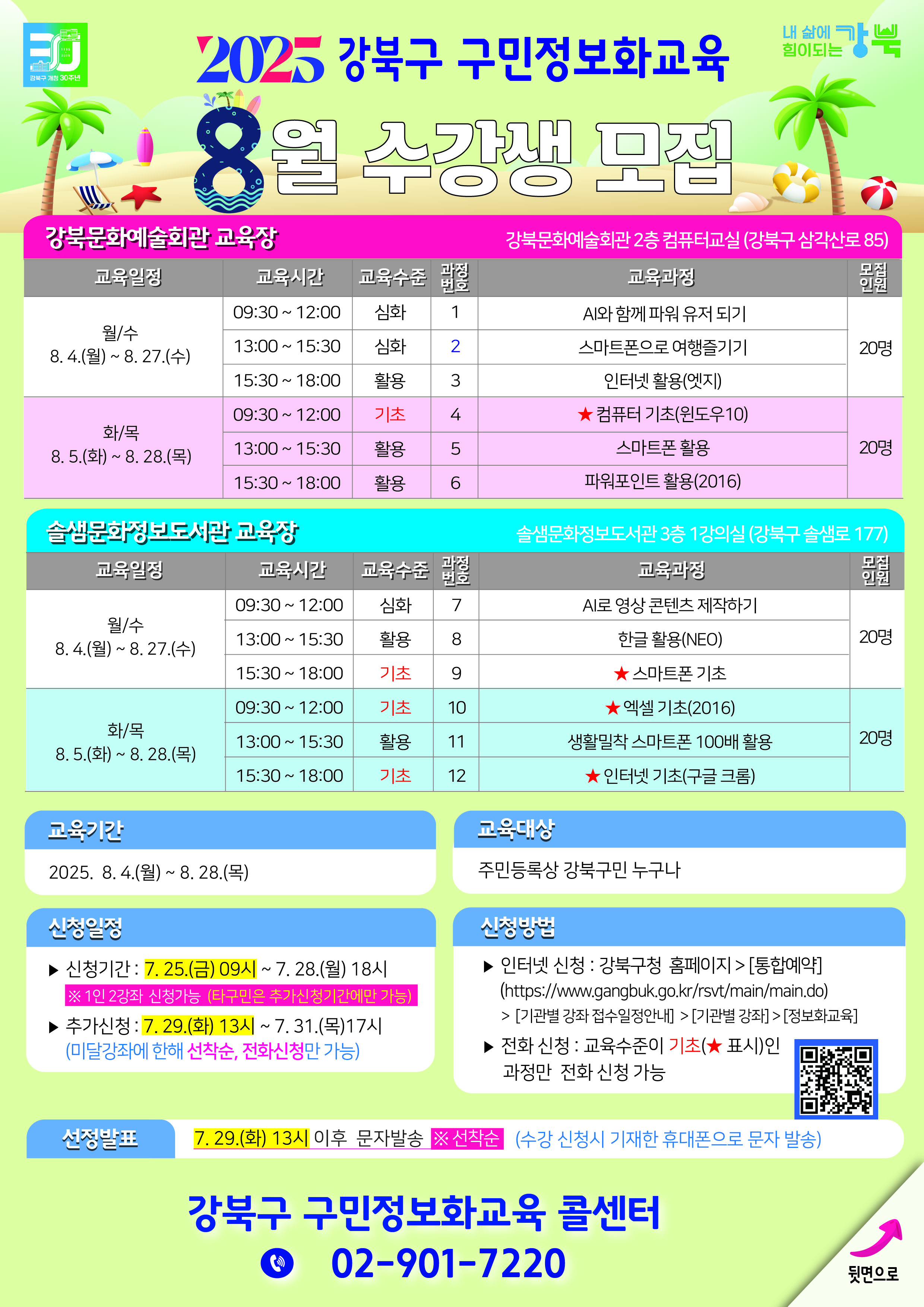 강북구 구민정보화교육 콜센터 ☎ 02-901-7220