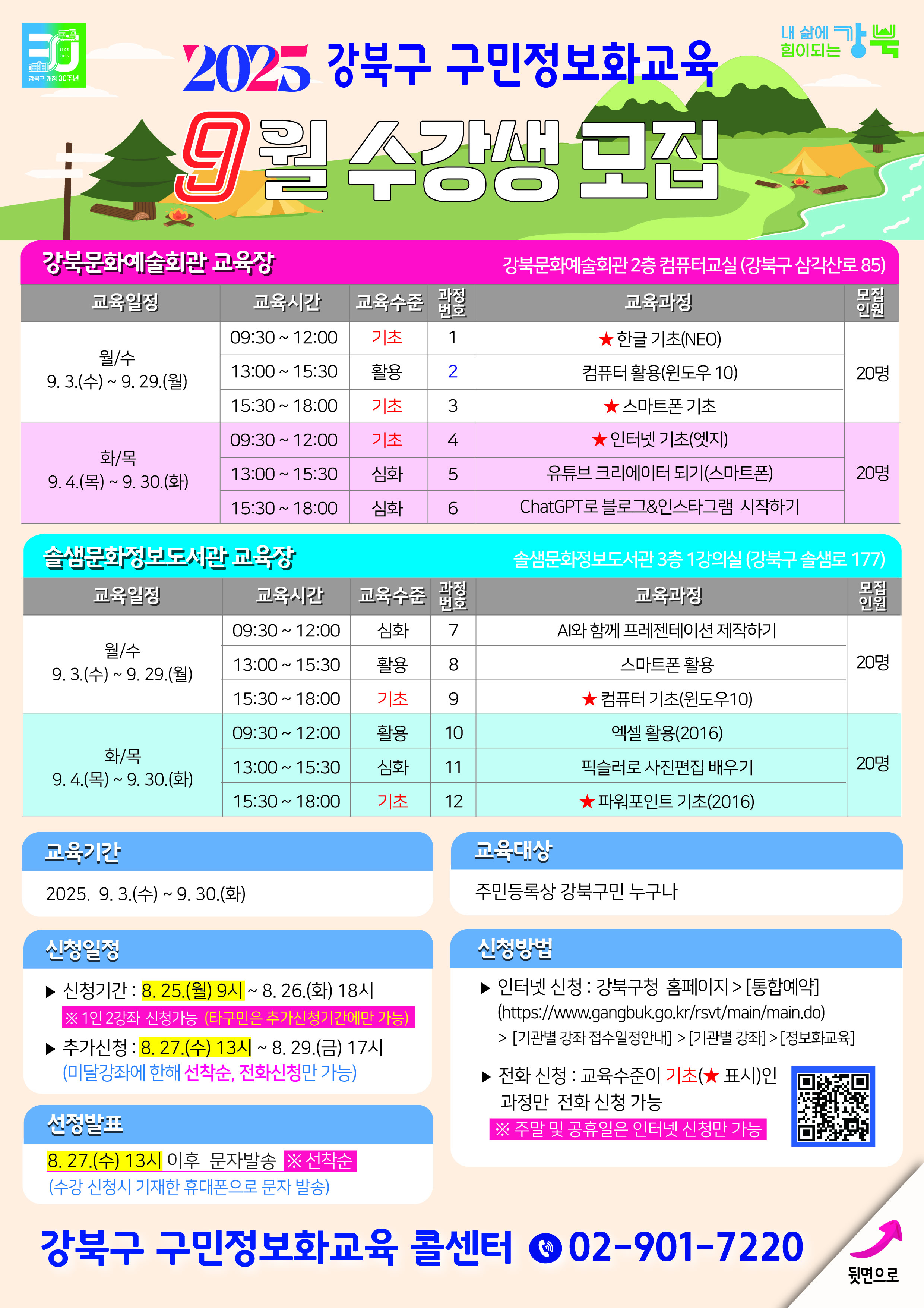 강북구 구민정보화교육 콜센터 ☎ 02-901-7220