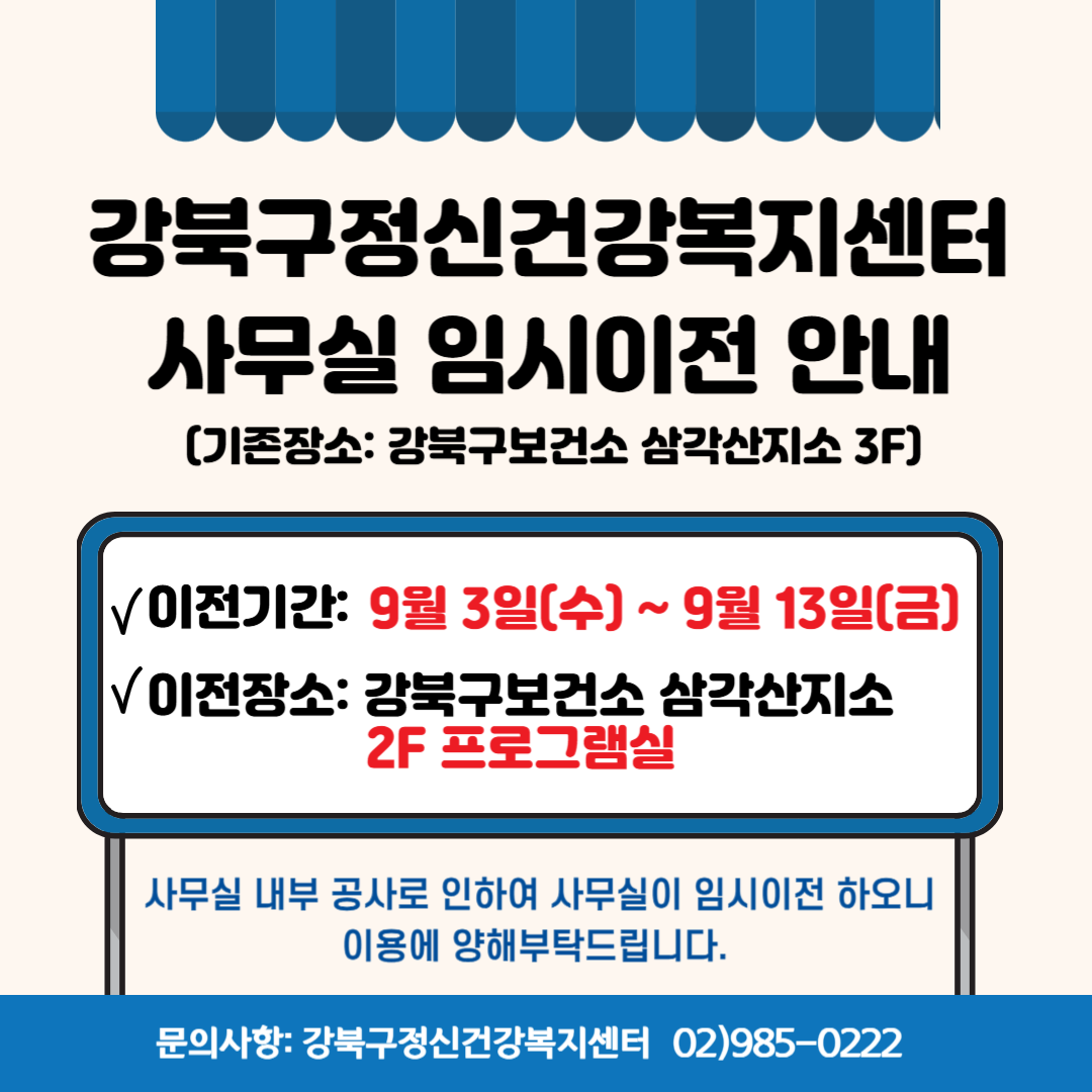 내부 공사로 인하여 사무실이 임시이전 하오니 이용에 양해부탁드립니다.