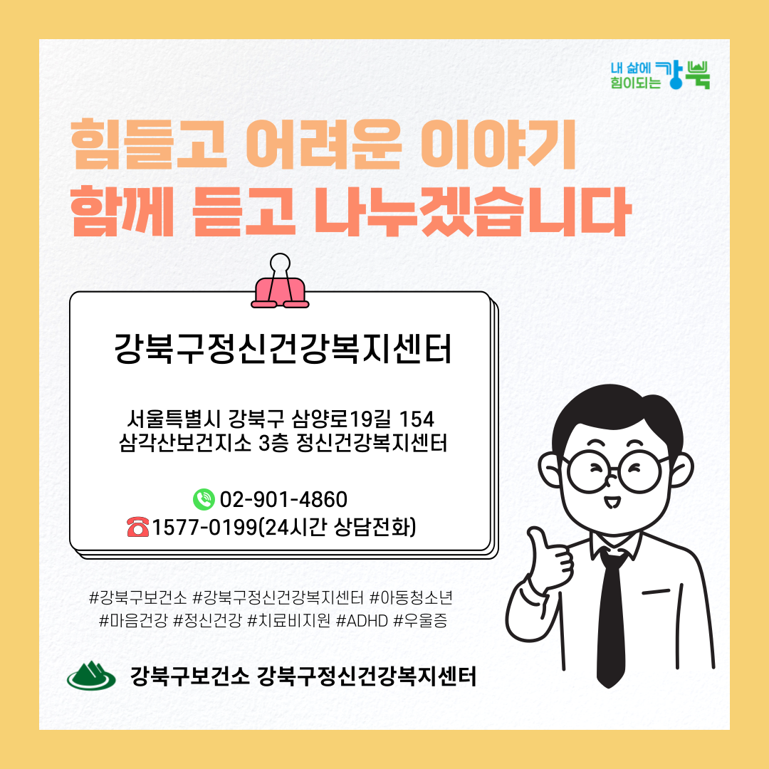 안녕하세요 강북구정신건강복지센터입니다. 😊