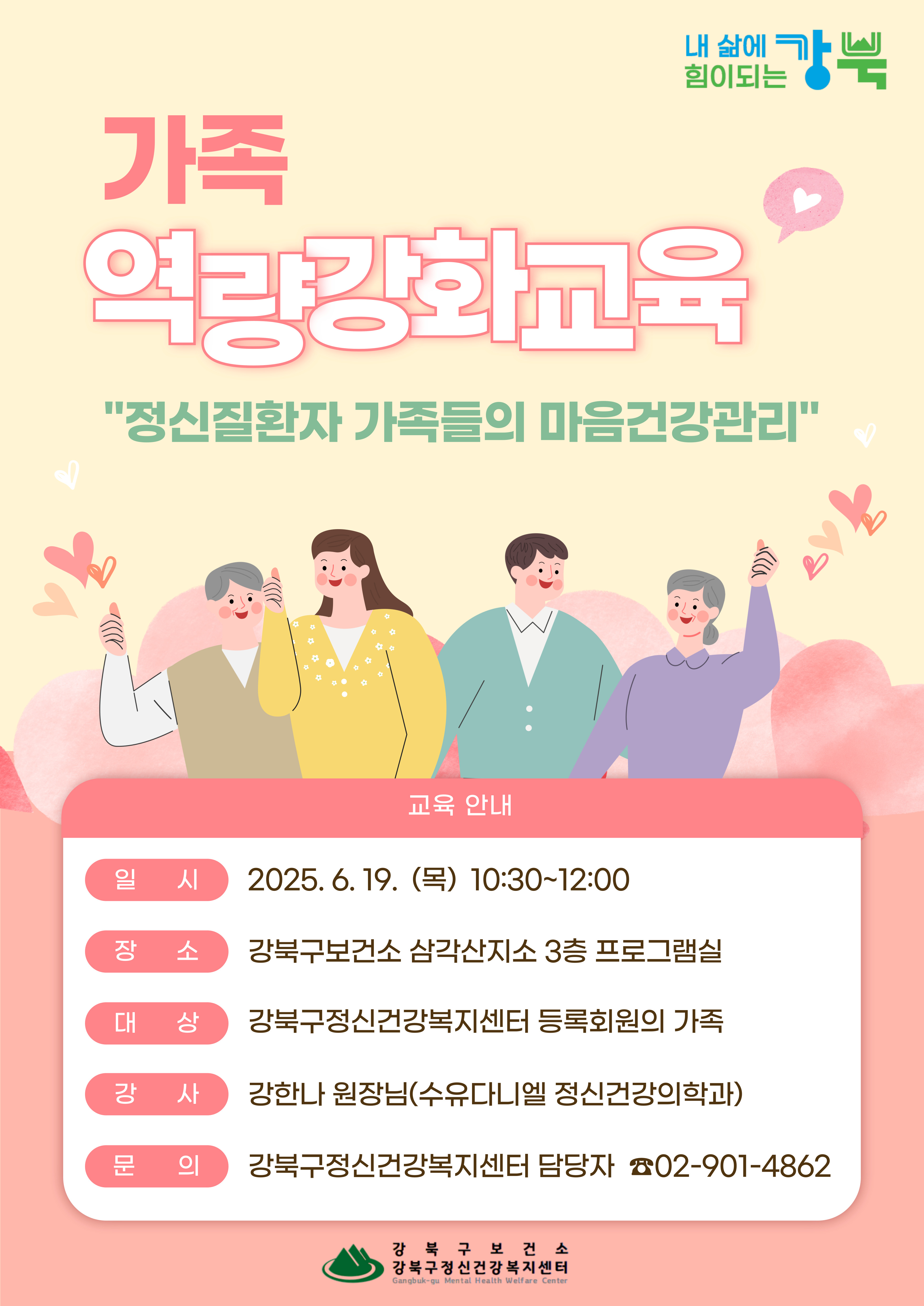 #강북구정신건강복지센터 #조현병 #조울증 #우울증 #정신질환 #정신질환가족 #정신질환자가족 #가족교육
